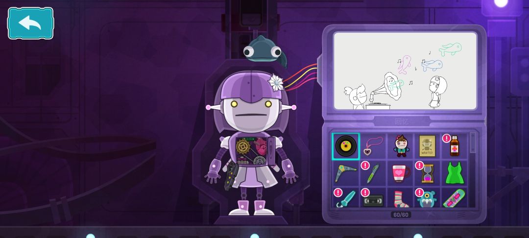 美术:游戏中的60个收集物对应着60段小动画,还有穿插关卡之间的漫画,全程不用文字和对话,将故事和男女主相处的点滴展现出来。游戏内也有许多(与过关无关的)可爱的小互动,例如某关的电视机可以切换多个频道,每个频道都有一段小动画,或是某关可以反复点击的泡泡糖机,男主每次吃泡泡糖都有不同的动画演绎。