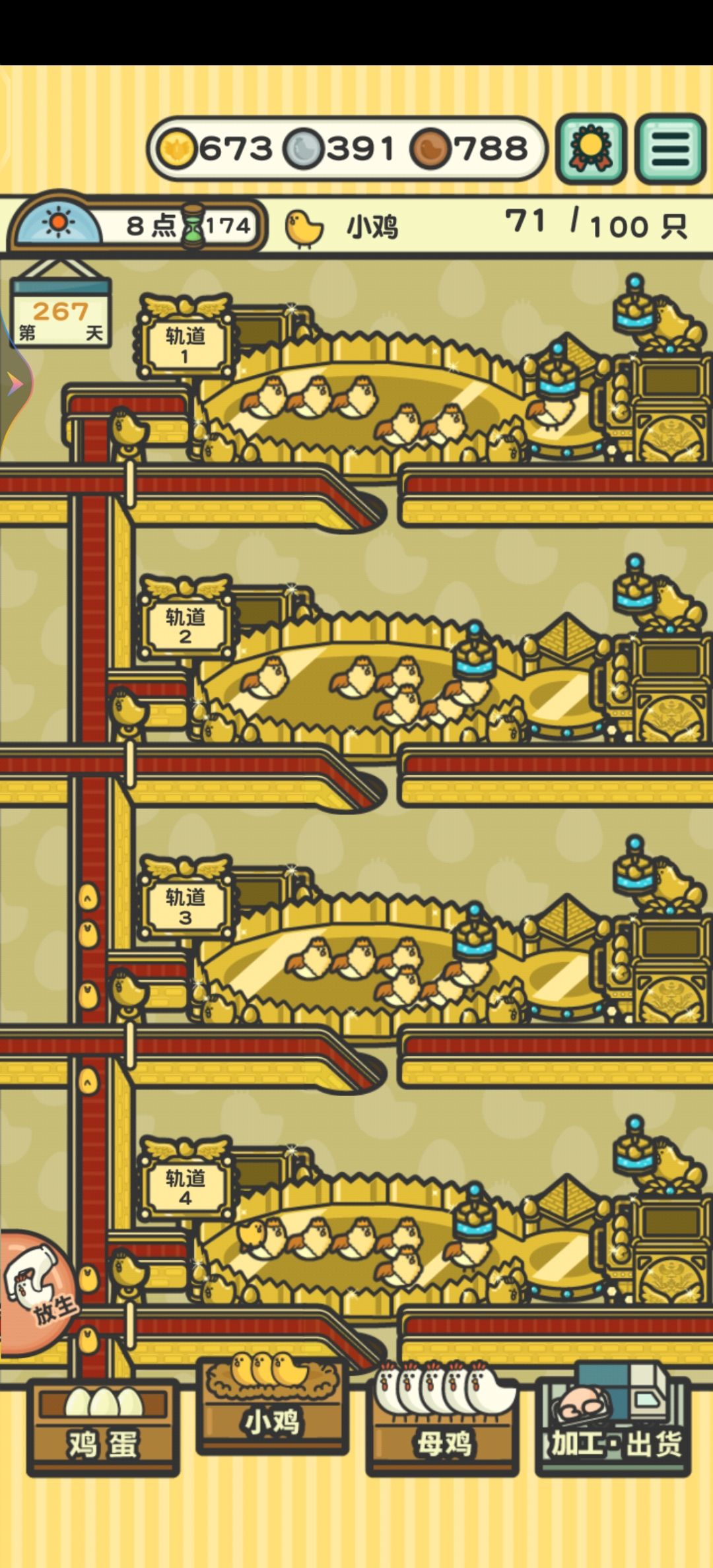 ><在tap居然发现了我最喜欢的小小游戏,其实我以前是在手机自带的应用商店下载的,反复玩了两次,游戏真的特别好玩……可以升级工厂,还有很多品种的小鸡。我个人特别特别特别特别特别特别喜欢尖嘴的这种生物,小鸡小鸟之类的,所以完全被这个游戏拿捏了!!!看到它评分低低的所以想来为游戏本身正名一下!毕竟我是已经玩到通关的人了——顺便炫耀一下黄金鸡舍和鸡王!
