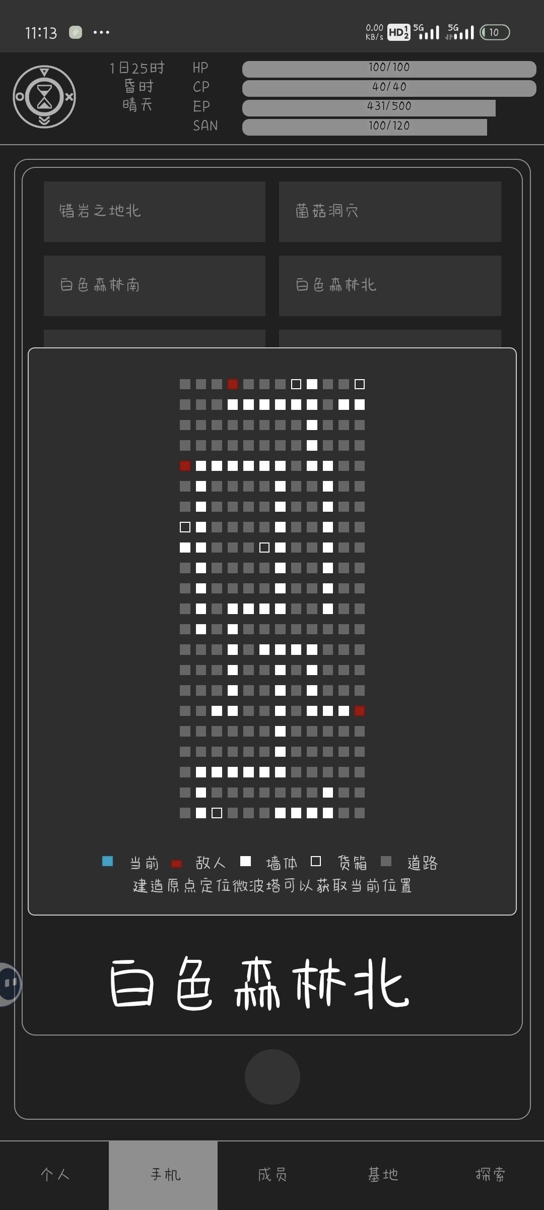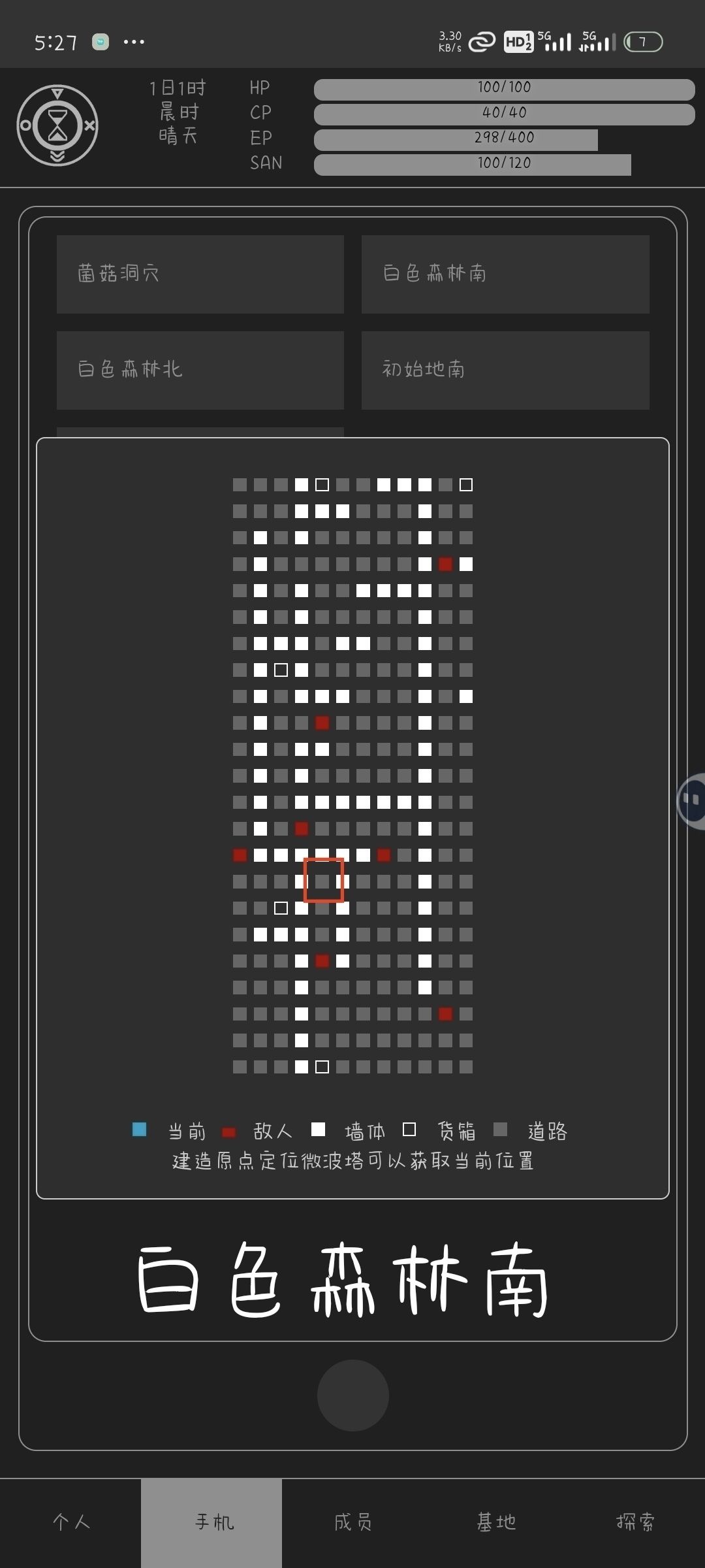 7.开启地图【白色森林南】【白色森林北】,之前地图得到的电池我们可以先安装上。此时ep值300