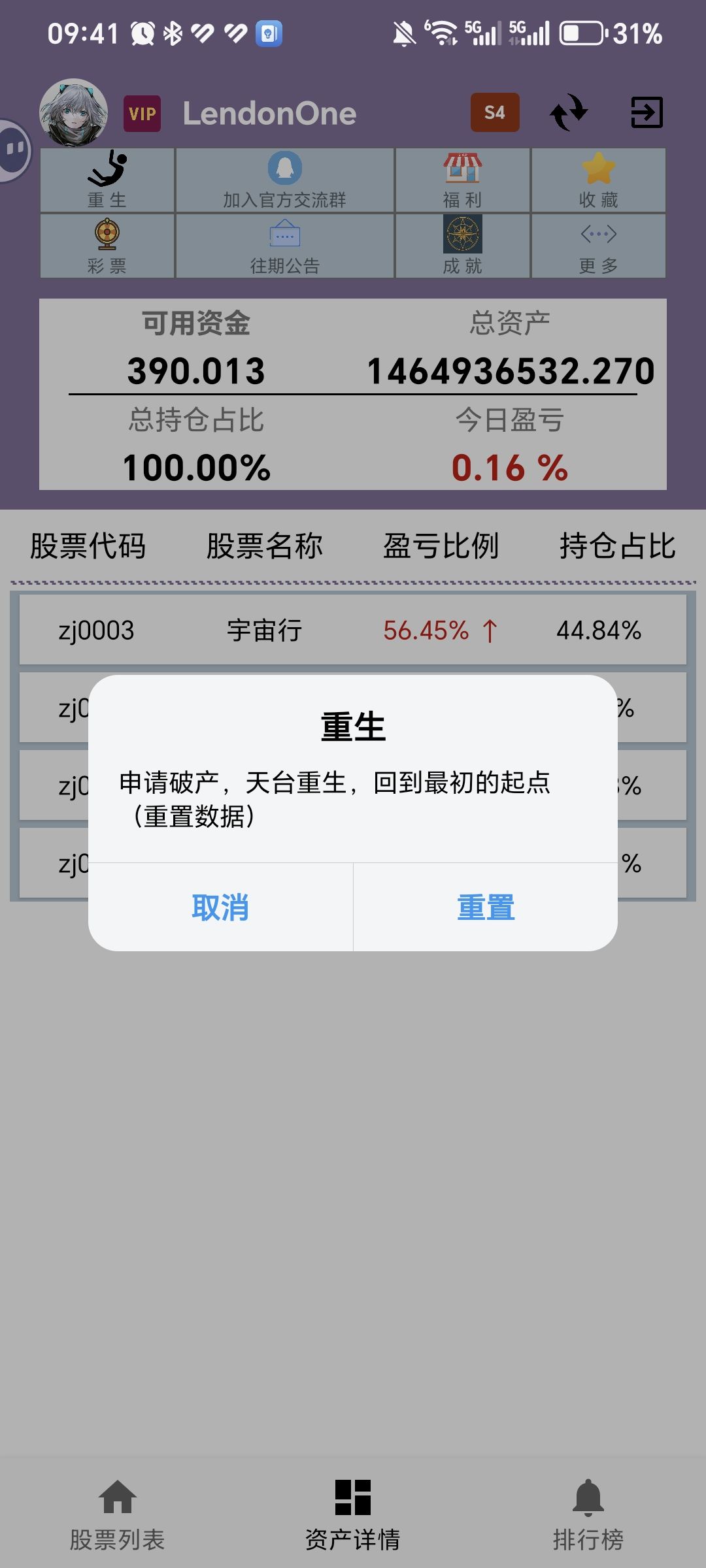 金融小白第一次体验股市,感觉投资很容易嘛,这就去a股大杀四方(严格来讲我觉得这款游戏不能称作游戏,对我这种没有接触过股票的人看它就像看Excel一样。不懂金融,但看到一路向上的曲线心情还是很愉悦的。感觉自建股有点太随机了,就像评论区里说的那样,加一点随机事件可能会更有趣一点。很可惜,遇到不可抗力也没办法。希望能够看到制作组“重生”的那一天。