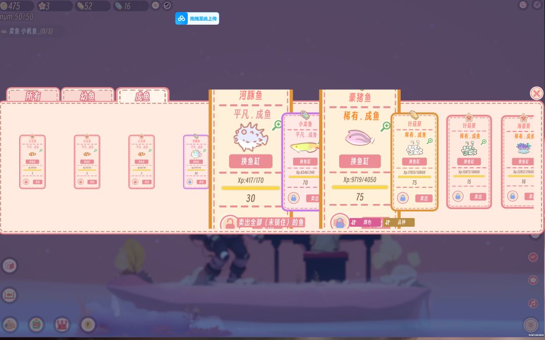 有一个给制作组的反馈:当变化窗口大小后再打开卖鱼那里,选项卡大小会非常不稳定,基本打开一下变一下,这个bug真的太难受了。