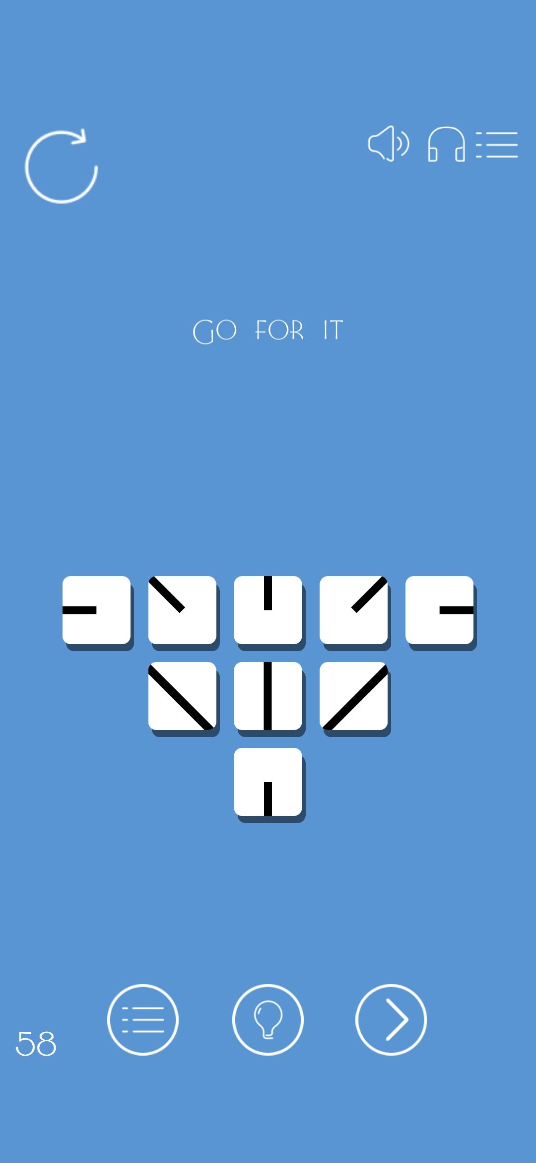 又全通一个游戏~画面简约,一共60关,有一点bug,刚开始到二十几关时突然卡住了,退出后进度居然没了😇然后又从头开始的。前面的关卡都挺简单的,后面有些关卡有点抽象,3次提示之后不知道为什么看不了广告,卡在了58关,不过蒙出答案了。59和60的答案没看懂,最后还有个彩蛋关卡,整体来说游戏的可玩性不错。