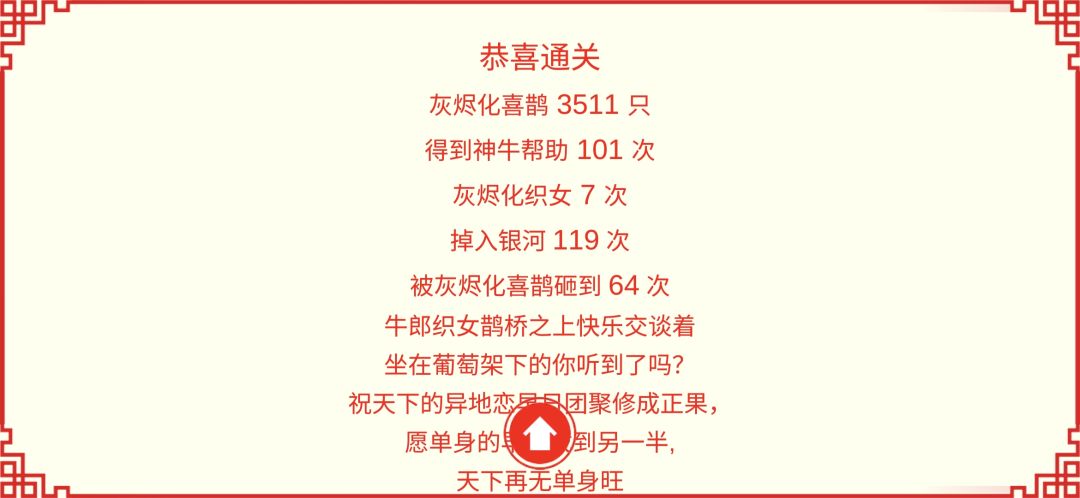 每关结束都有关于七夕的古诗,虽然可能相关的诗句就那么多,一首诗出现几次,但这个加古诗的想法不错。剪纸的设计和牛郎织女这个故事搭配也挺合适的。