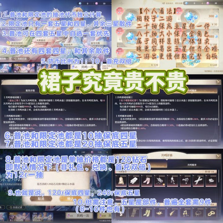 理论上来说,完全保底一套完整的五星衣服,差不多需要9*20*12=2160r,这价格自然偏高了。