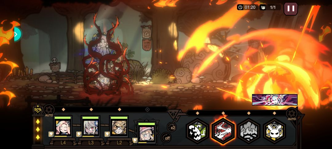 与名字【叠入深渊】相应,游戏中的推图,玩家可以将角色进行叠层,获得伤害加成,以及增加高度达到攻击范围扩大(P2)