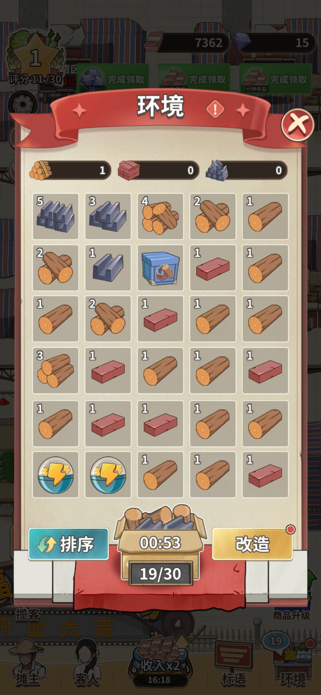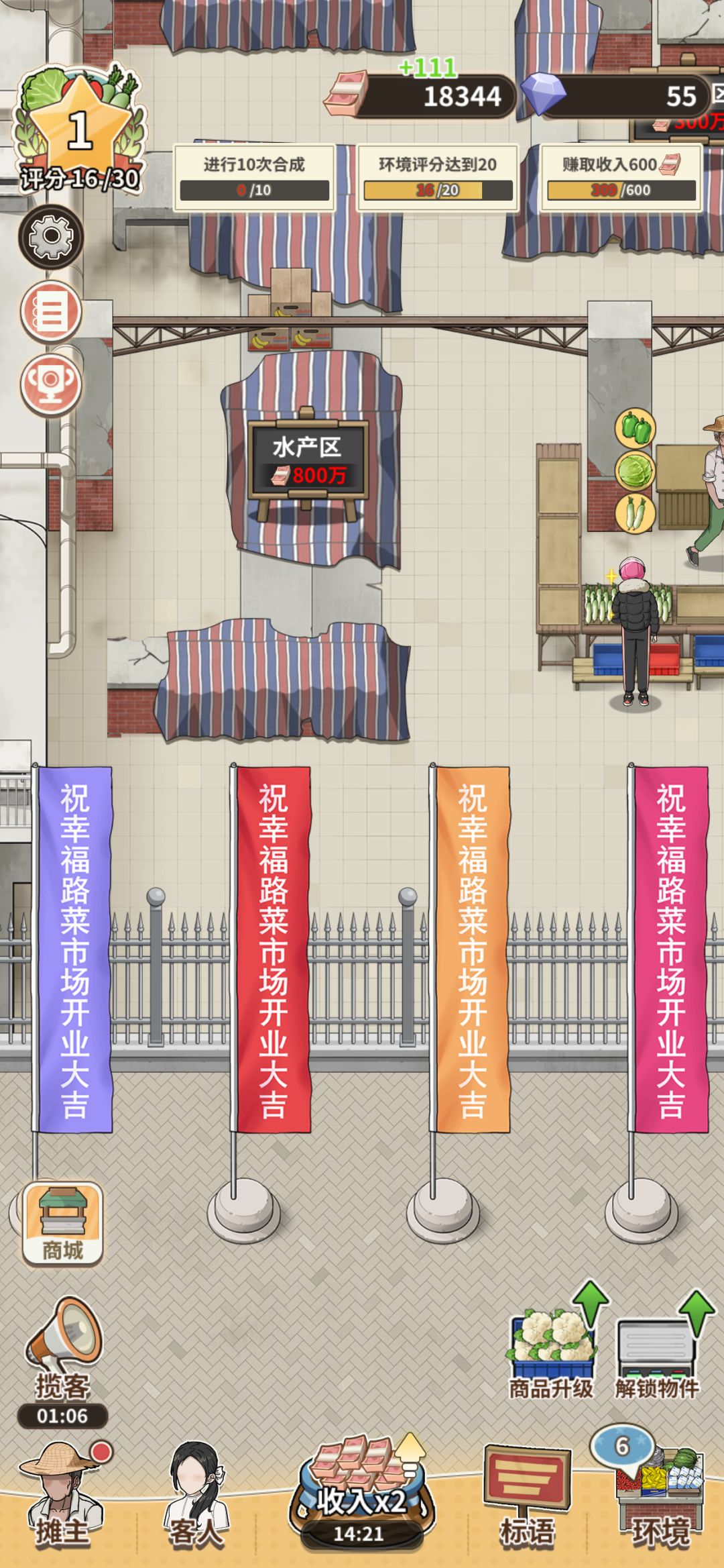 游戏模式和许多同类型游戏一样广告不少 但可以自行选择 不选广告则进度较慢内容不多 就是给顾客升级 摊主升级 物品升级个人觉得与同类型游戏玩法相同但此游戏对我来说并没有什么吸引力就是不断的升级做任务然后攒钱开店 但是内容个人觉得不多 个人觉得并不是很有意思