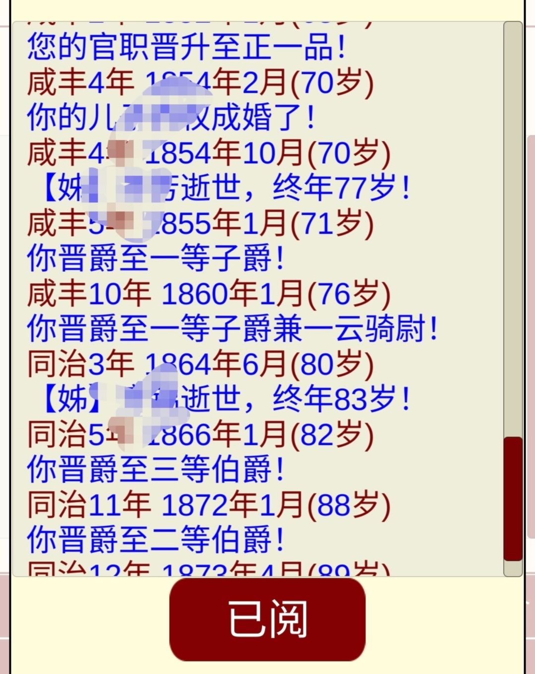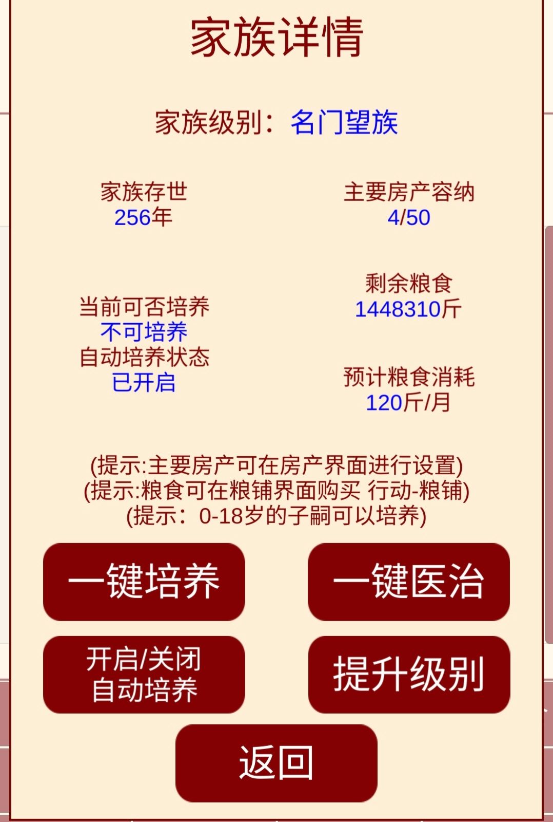整体游戏玩下来还是成就感挺高的了,就是爵位挺难升到顶级的,希望官方大大可以改善一下?玩法上面,个人觉得比如到年龄娶妻或是嫁人,可以根据家族名望设置几个具有不同属性年龄性格特点的人选,供玩家选择。随着官职的升迁,可以开设一些社交活动之类的,后面感觉玩着玩着钱是挣得挺多的,就是没地方花😅可以拿这些钱为百姓做点事情顺带增些功勋也可以哒😁😁