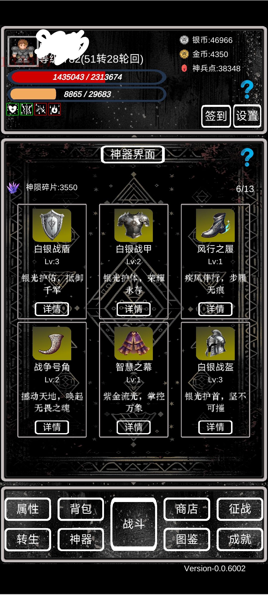 这游戏玩玩还不错,这要看个人喜好。我看有些人说存档玩没了,在这里我告诉大家一个办法,找到存档文件myData.sansans,把这个文件复制到其他地方就不怕存档出问题了,而且还可以用存档大法重复读取存档刷神器和装备。入坑9天的成果,还有要刷神器的话不要用最新版本用0.61版的就好了,目前最新版本的金币宝箱出的东西是固定的