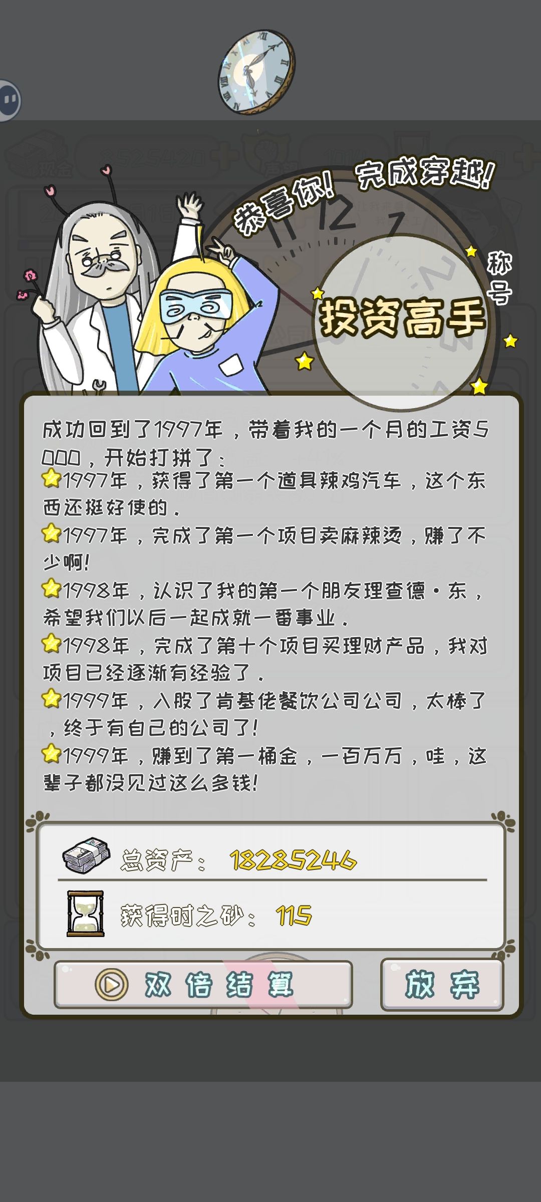 整体有种星爷式80.90倒卖城镇画风是蛮有趣的——hah谁没有个穿越回去买彩票买房的梦1.画风:⭐⭐⭐⭐2.玩法:跨区倒卖和政策相关蛮有趣的(倒卖和买股才能逆天改命,真实了)3.可惜的就是:赚到💰的变化感除了称号以外,没有太多感觉。——希望增加:(1)房屋装修(2)个人服装配饰购买|自己用车购买(3)甚至加入婚恋等多人机关系相关或许更有趣?