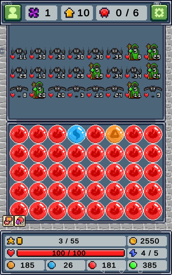 很好玩的肉鸽游戏啊,算是玩很长时间以来玩的很优质的一款,把消消乐和肉鸽元素结合的同时,做好数值平衡。在这款游戏里技能搭配和运气都很重要,像素画风也是完全对我胃口,附一张萌新风火元素贯穿流😘希望机制可以更复杂一点,加油加油