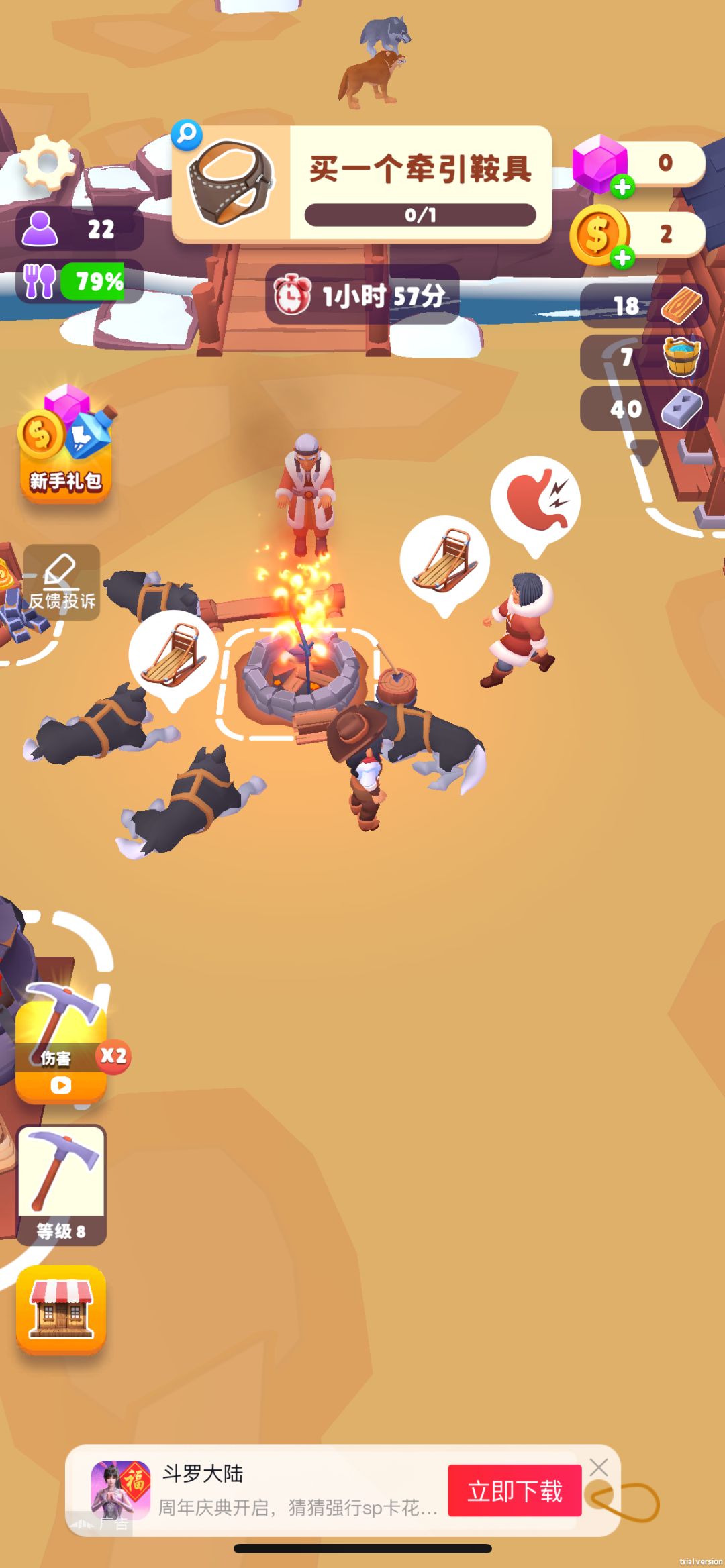 画风还行,玩法也还可以,但有一点,靠我一个人收集原材料养活整个城镇,前期还好,后期太累了。。。其他相似玩法的基本居民会帮着收集原材料