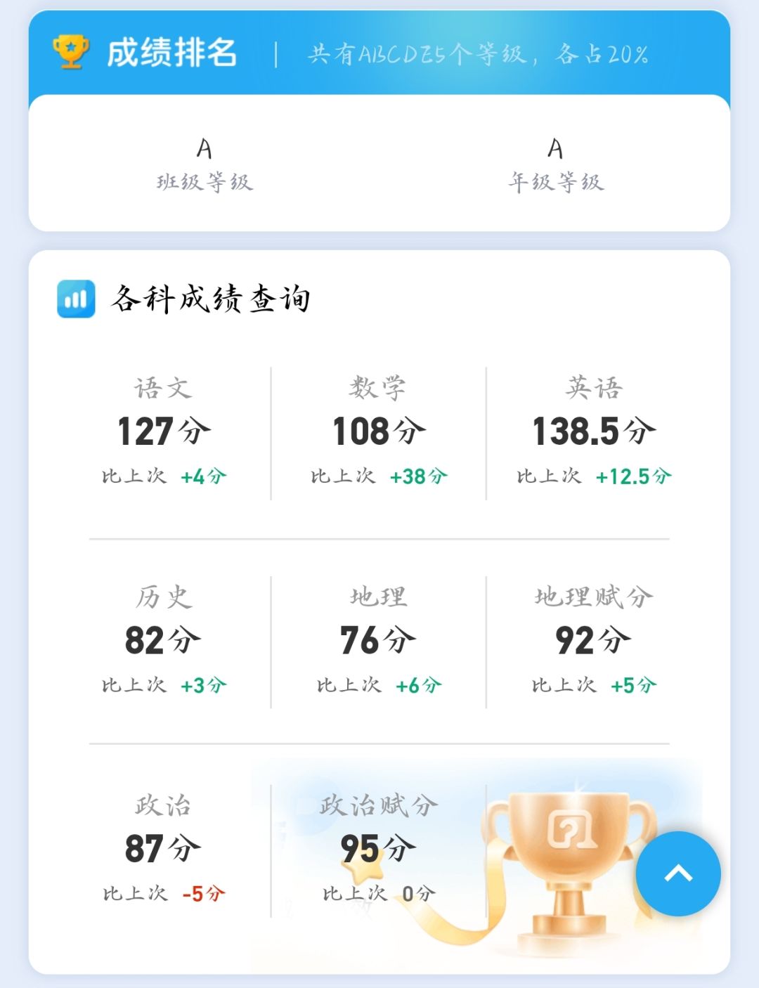 针对评论区对本人因为游戏题做不出来才打差评的质疑,特把末尾的英语成绩换成最近一次的综合测试成绩。可能确实没有各位那么优秀,但是也应该达不到所谓因为做不对题就给差评的水平。