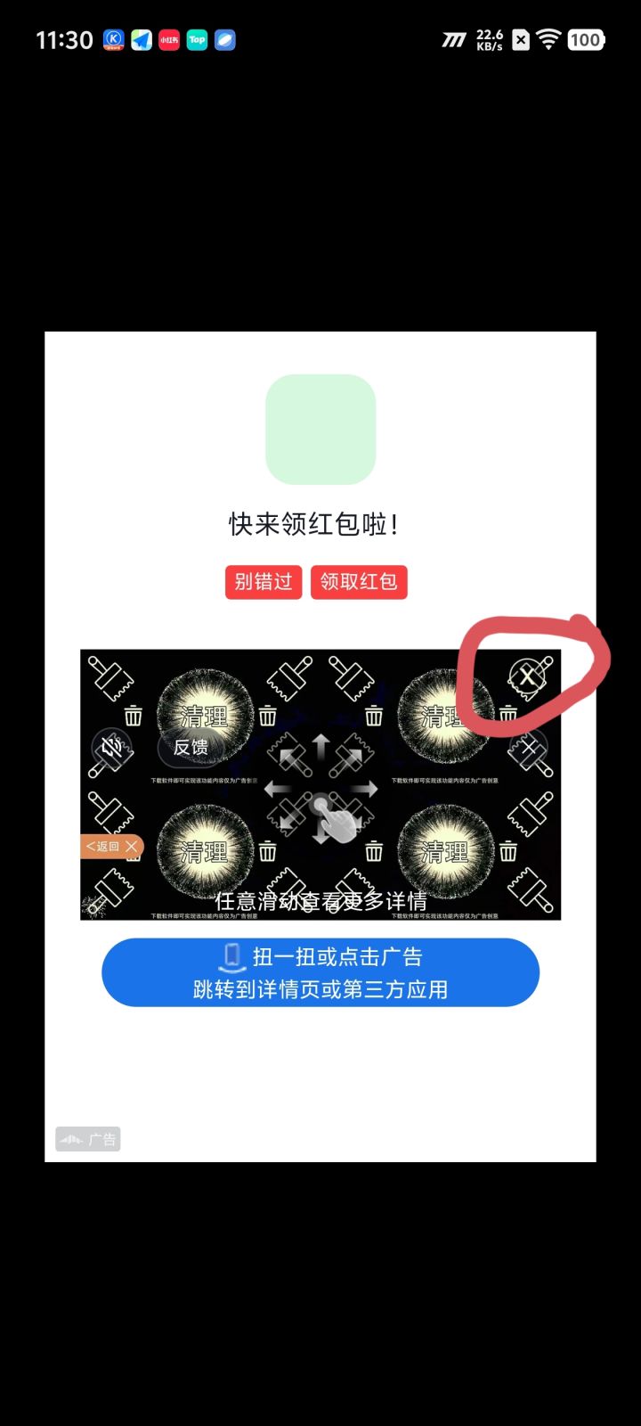 广告看归看可以,但是你不给我关闭广告的按键这合理嘛,给一些假的关闭按钮有意思吗?