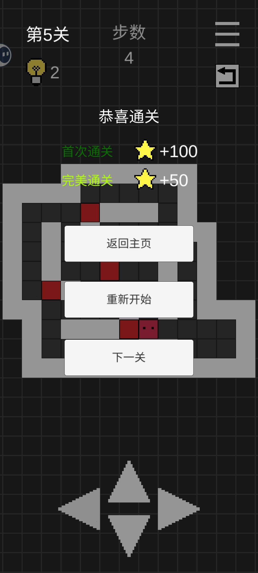 bug还很多哦,推动箱子后一直点回退直到0,然后在走一步再点一次回退,就会变成你推动箱子之后的样子且是0步!!!