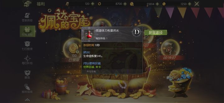 10.绷中难绷的每日福利,你这个HP药送了不如不送,占我背包,我现在32级28w血,喝一下回340我听着就想笑,第一次喝药是在打凯德拉boss rush,被无限飞天狮蝎打没血了,结果喝了跟没喝一样,事后看到这个数值给我气笑了