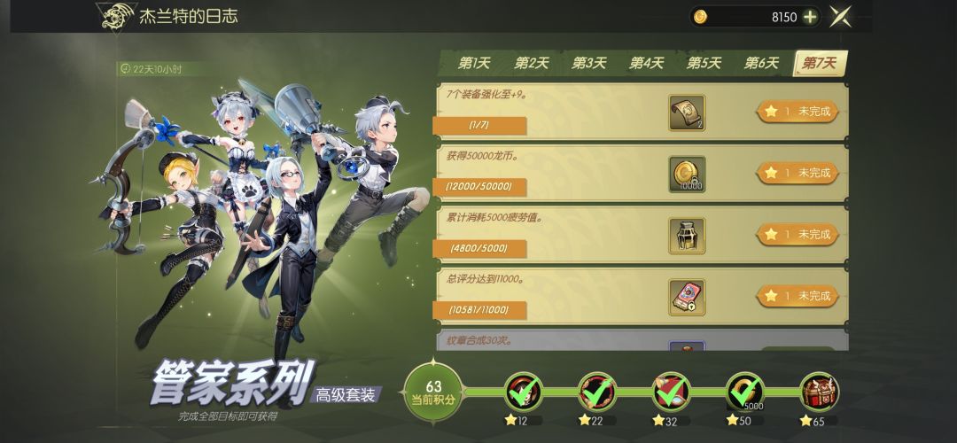 11.送了但没完全送的A级时装,精心设计过的故意卡着不让你随便到65,别的游戏这种公测福利都是给了一堆冗余,这里恰恰相反卡你获取条件,接下去想拿A时装套要么继续搞装备提升评分(然后涉及到另一个坑下面再讲),要么做每日每天拿1000龙币再做8天,七日庆典?怎么不叫十七日庆典呢?