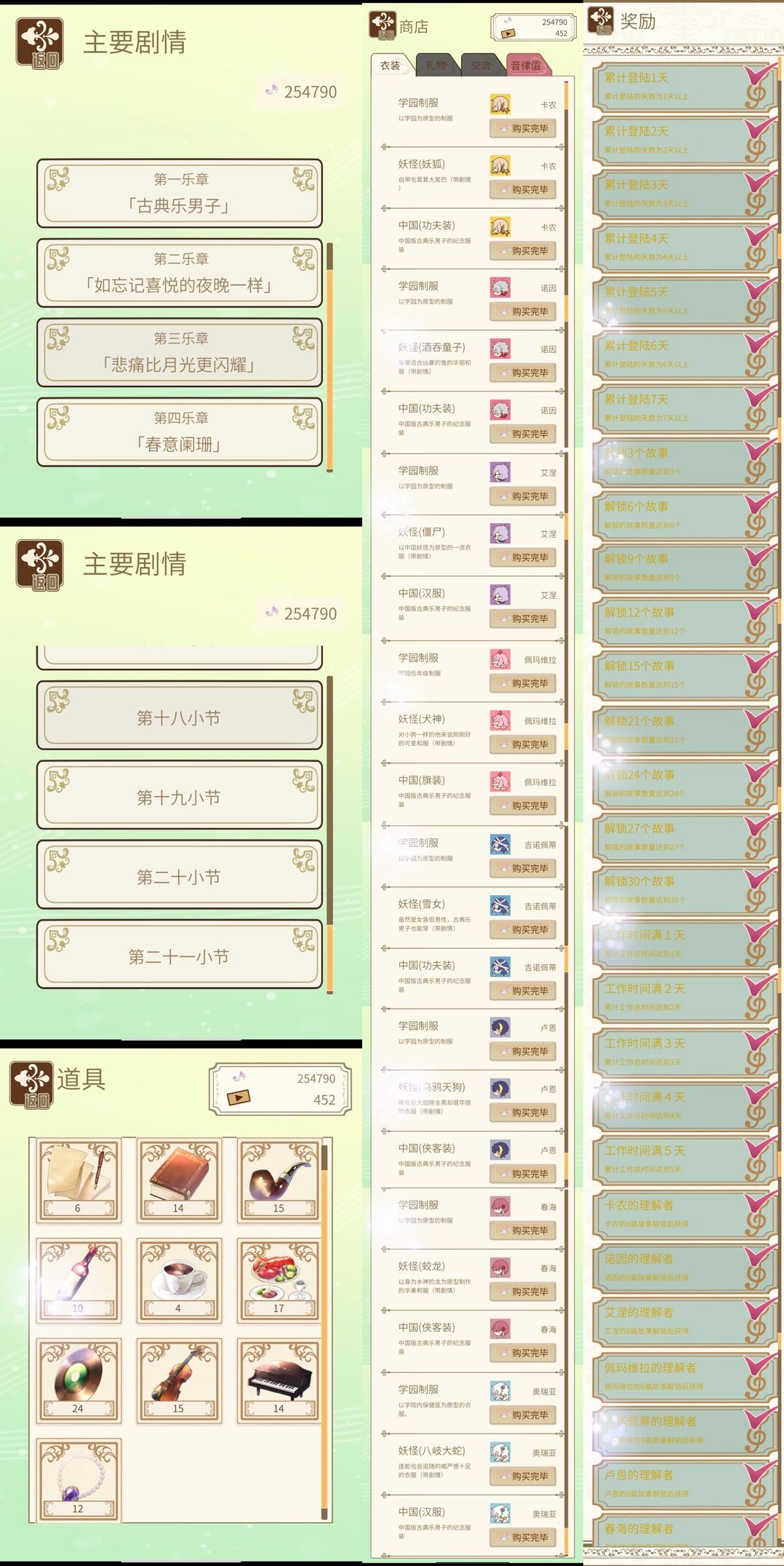 首先,我认为这款游戏非常纯粹,并没有特别冗余的购买系统,全游戏只有一种货币(音律值),而且这种货币的获得来源多样,货币可购买产品也很多样且量大,短期内不会出现长草的情况。