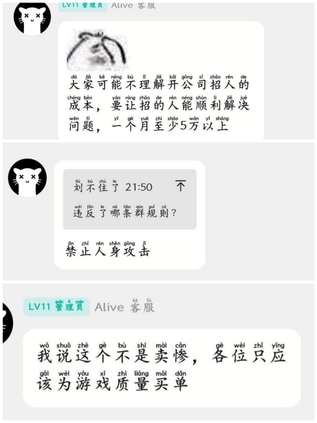 官方很厉害呢,把玩家一脚踢出群,直接捂嘴,现在玩家想进群都进不了,太有实力了,几位玩家轮番上阵给你讲解,还是听不懂,实在不行招个客服,你说要5万块!!!有这样理解能力堪忧的官方,祝倒闭哈!