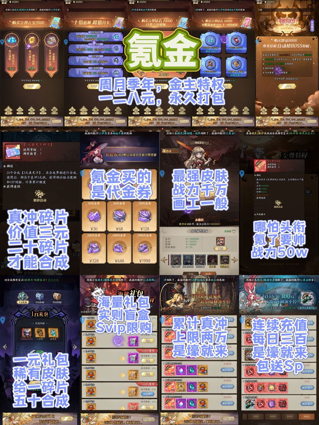 比较经典的就是周月季年+金主特权卡,价格为12/30/68/128/98r,而且永久打包也只需128r——难绷,怕不是坚持不到一年就跑路了。