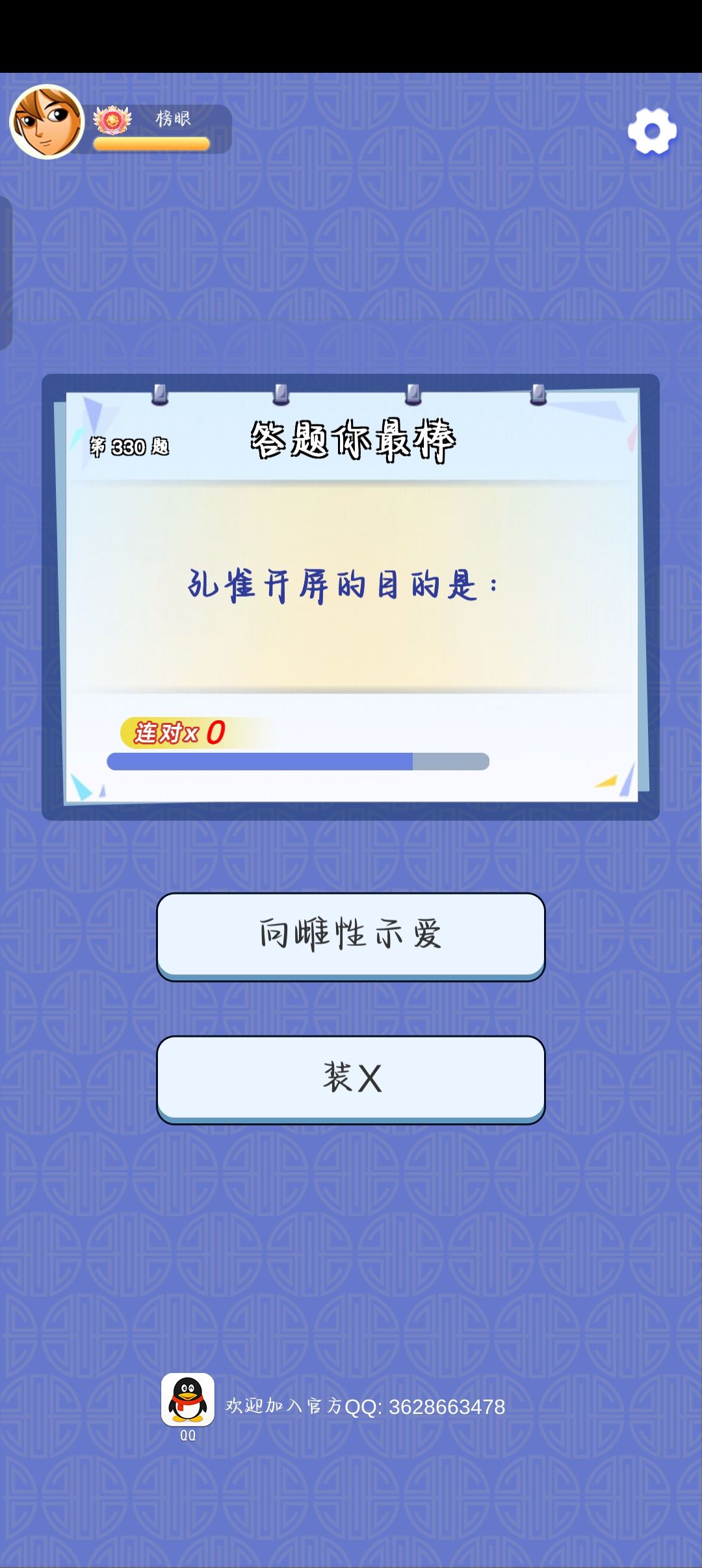 还行吧!很简单,学生也能玩,就两个选想,然后我玩了330,想继续玩就给我卡住了!我想点都点不了!我都到庄元了,上面显示白银,呕