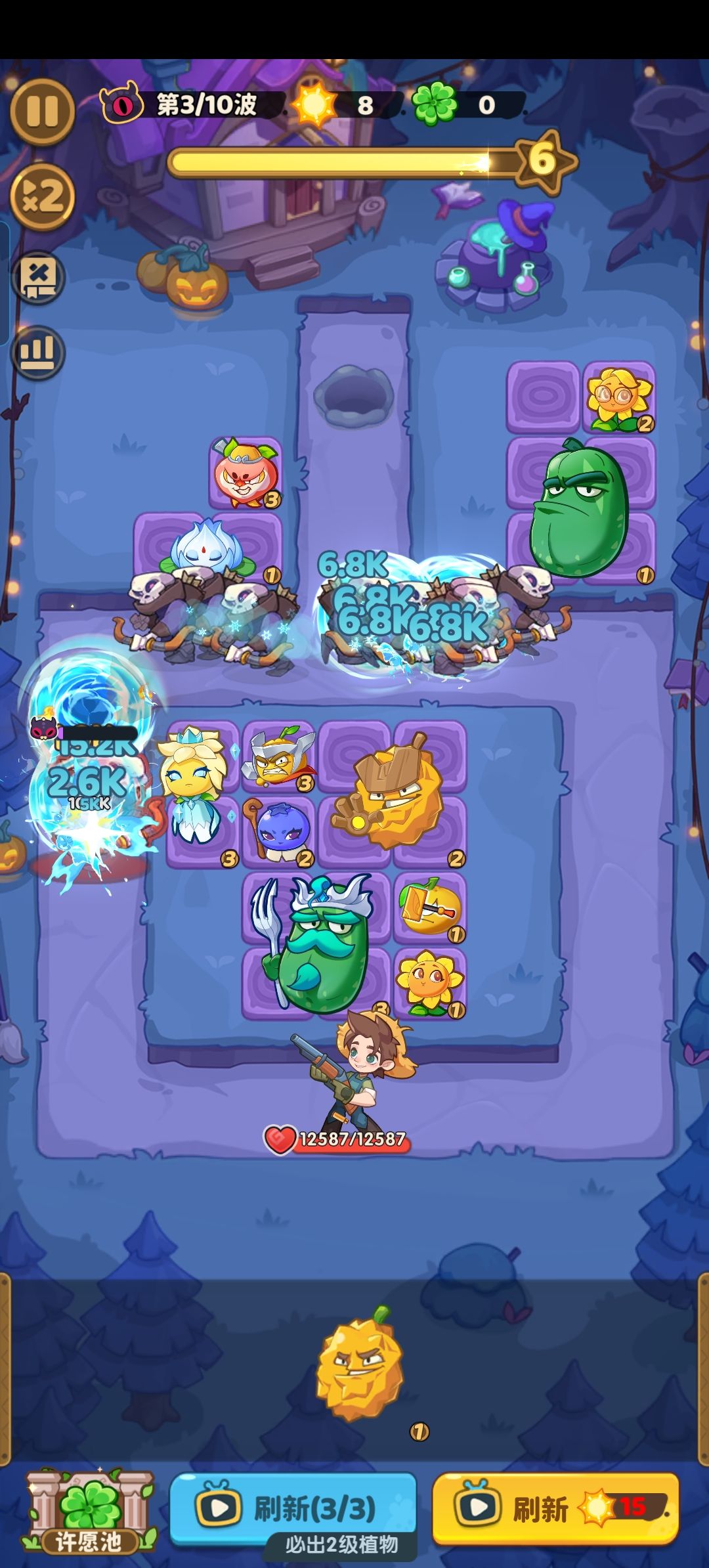 这个游戏比较突出的特点是植物杂交玩法,两个植物杂交可以进化成新型植物。