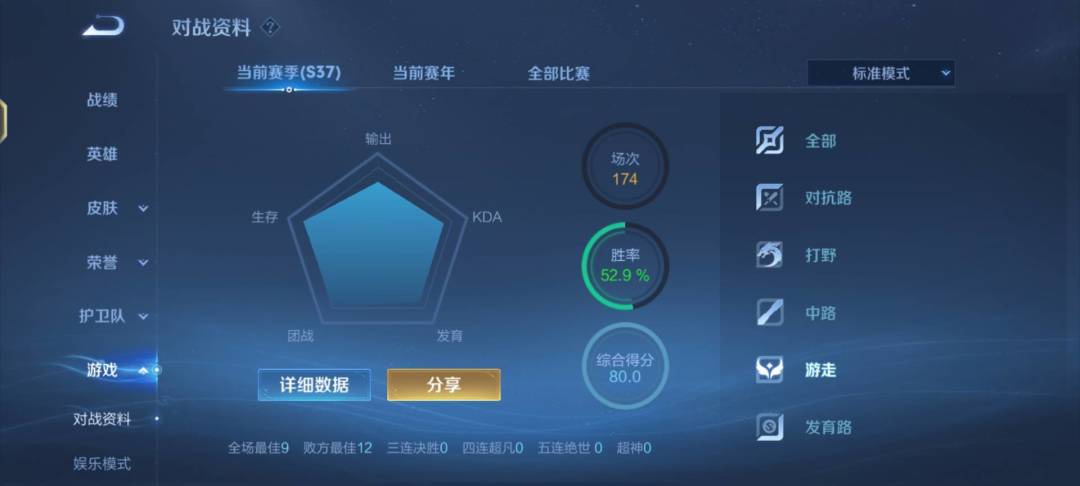 这个游玩时间算是真的玩了很久了,也充了不少钱,买了很多无双皮肤,还上到了134⭐️。以前打游戏不在乎输赢胜负,总觉得跟朋友一起玩就是最开心的。后来慢慢地,大家也都不玩了,而我也从娱乐性更多地在乎竞技性。一说要玩娱乐模式,那算了,不如排位。但排位的机制实在是荼毒我太久了,以前elo还能保持五十多胜率,现在每个赛季都是49胜率,全靠金牌上分,打了几百把,在负胜率的情况下还能有78评分,应该不算混了吧?可是为什么赢不了呢?渐渐地就没了快乐,后来那群玩王者的没在喊我五排后,我自己也懒得打了,慢慢地就弃游了。不玩之后,发现就跟原神一样,只要放下了,那就真的不想再点开这个软件了,就如同那么多年的青春,随着毕业一去不复返了。不是说游戏不好玩,只是我或许不适合这样的游戏了。还是祝小王越来越好吧,能带着一代人的回忆一路走下去。