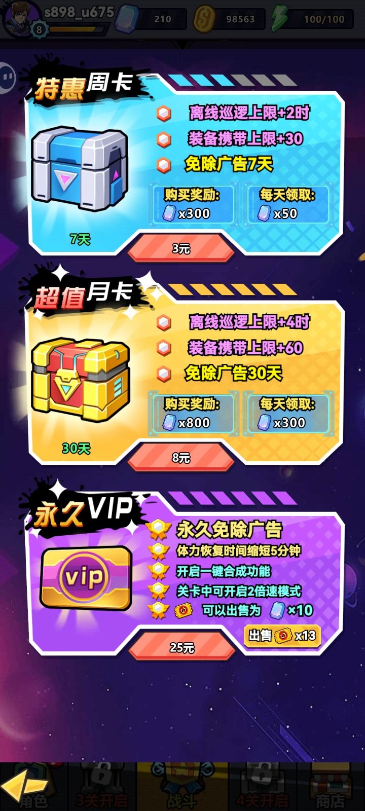 这游戏说实话微氪也能玩,最重要的就是要免广告,可以考虑搞个月卡或者永久卡。最近更新了版本,加了很多内容,价格也调低了。以前永久卡要88,现在只要25,我果断氪了,终于再也不用看广告了,哈哈!玩起来就很爽,关卡可以2倍速,体力恢复也加快了,体验一下就爽起来了。现在登录7天还送利兹小姐姐。总体来说运营上各种福利小活动不断,充值活动性价比高,很适合小R,游戏简单易上手。对于我来说,就当个解压游戏在玩,没啥压力,晚上睡觉前玩几把,很快就能睡着。