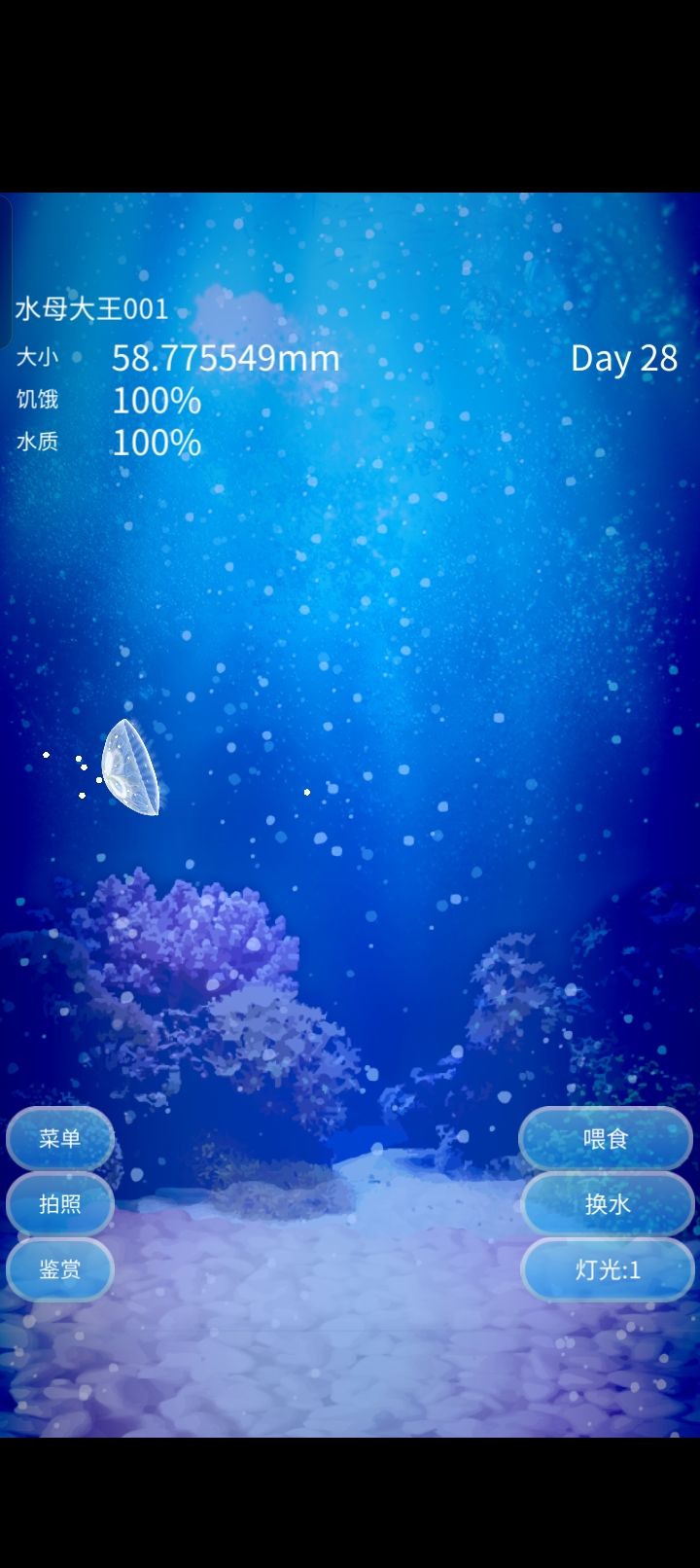 虽然只玩了十八分钟,但是很好玩!会慢慢陪伴这只小水母,我的乌鲁鲁星-----2025.4.5第十天了 总算长到30多了 不知道会不会长得更大一点 好期待呀-----2025.4.23第28天了,嘿嘿,快长到60啦,继续成长吧!我的水母大王!