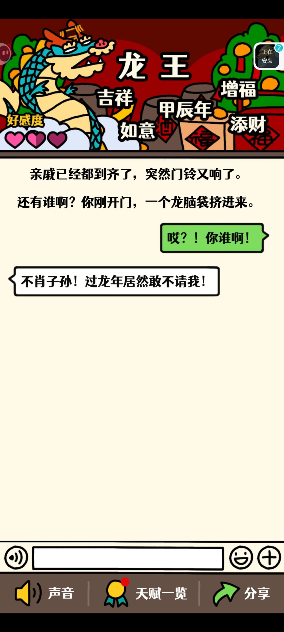 💬叙事:1.这个游戏很一般。真的很一般。但不至于差,三分是中规中矩。类似一个收集类型的聊天怼人or讨好or高情商模拟器。2.可以的,当小短视频看挺有意思。但是有些天赋不看视频就解锁不了实在有点伤人。3.有女生男生选项,好评。4.玩久了有点枯燥。5.本来想打三星。多一星吧。因为真的很可爱。6.适合很孤独的人玩。大概吧。🗨️剧情丰富度:有待加强。加油吧。💡游戏创意:年轻人有理想,真的很不错哈哈哈哈(装老人笑)好了。总结一下:很特别的纯休闲游戏,收集癖可以考虑。