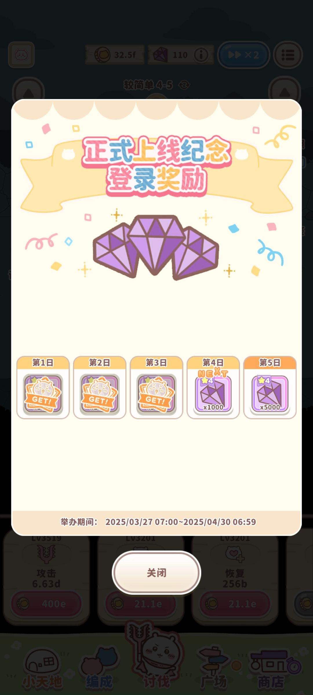 💰3.肝度/氪金度:肝度我感觉还好,因为没什么地方可以肝的,如果卡关了最好的办法就是下线或者氪金,昨天我卡关之后我发现我升级攻击/体力/恢复升级了好多级之后还是打不过去,然后此时我的资源也用完了,我抽不了支援和武器/互动,角色也升级完了,能升级战斗力的我都做了,所以我选择直接下线等着领取离线的讨伐奖励。今天又卡关了我发现我可以让小可爱们吃零食,零食可以通过氪金和看广告获得,因为我的游戏渠道需要绑定外国银行卡而我只有国内的银行卡所以我选择了看广告,看完广告之后果然不卡关了,但是看一次广告维持的时间只有20min,时间过后我打小怪的时间也很慢(正常情况下是一击必死,但是因为战斗力和关卡不匹配所以最少得打两下),如果我不选择看广告那我就会被卡关,如果我选择看广告那我后续就得一直看广告。不过看广告也有优点,如果我看完广告后在效益时间内我下线了,下次上线会继承剩余的时间,这点倒是挺好的