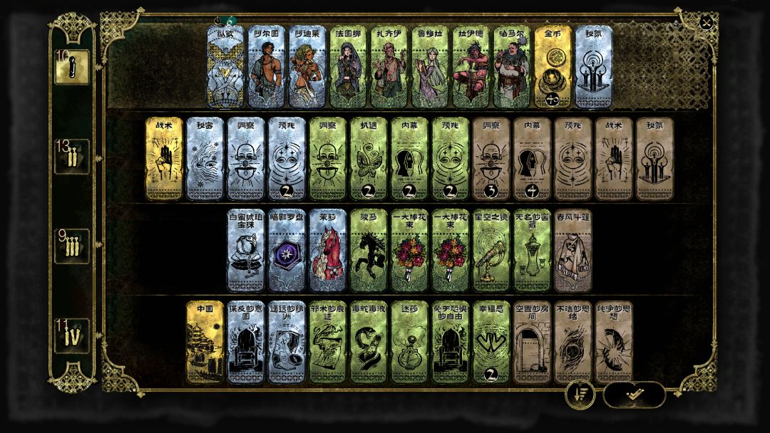 且游戏内苏丹也不是全权放手交于玩家随意操作,如果让苏丹不满还会下达指定任务让玩家做出强制选择,每种卡牌又分一金二银二筒二石的品质,低品质可以给高品质目标使用,反之则不行,于是乎就在这种限制下如果不能规划好或者不幸触发苏丹的惩罚,迎来的就只能是忍痛割爱了,可以说总有几次消除卡牌是对道德的践踏,接受不了混沌邪恶剧情的玩家还请慎之再慎