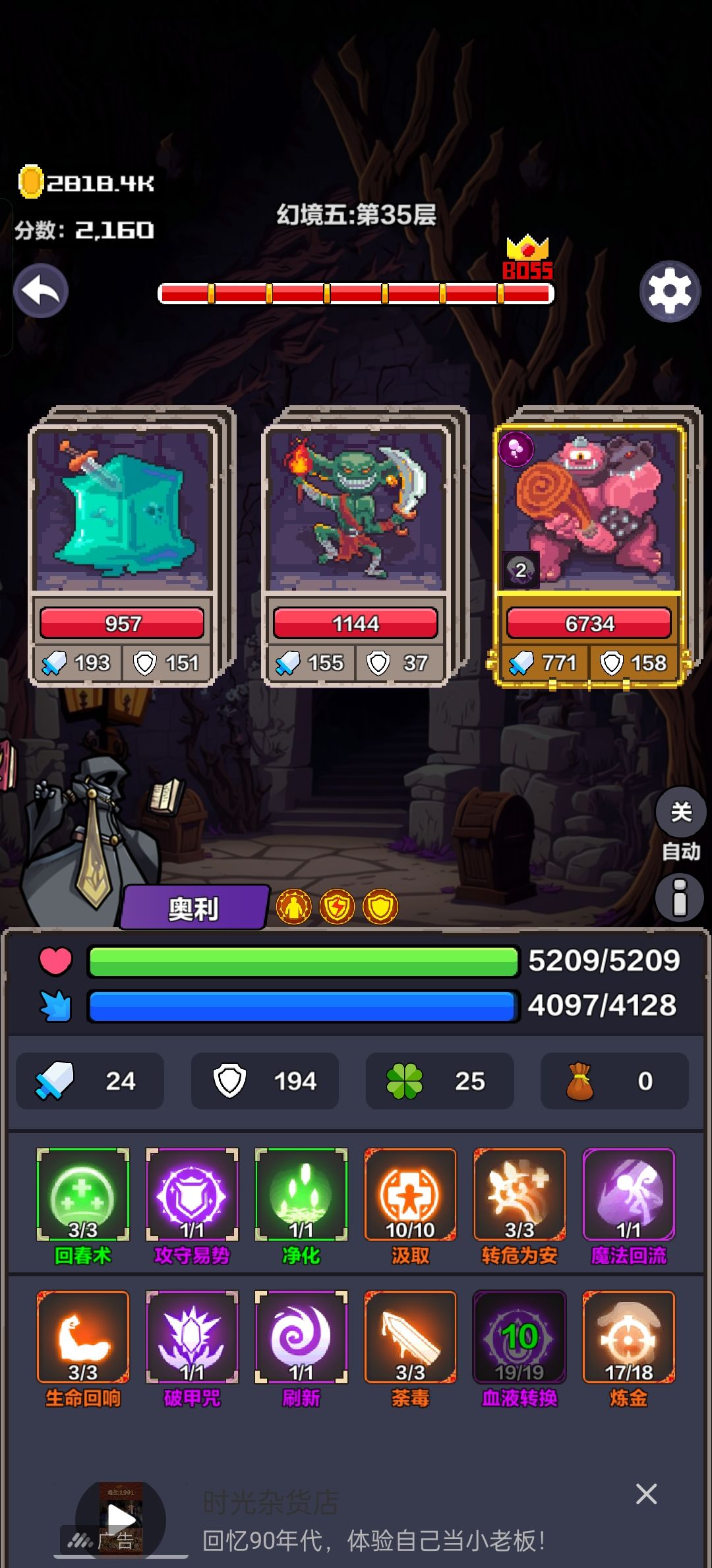 首选戏法师开局回春术、攻守易势、净化、汲取、悬赏属性:防御>生命>魔法>幸运>掉落思路:前期悬赏临时工赚钱挺重要,遇到商店至少刷新一次转危为安+魔法回流+生命回响 作为续航前期开局基础上重要的需要回蓝,有蓝就可以针对各种情况遇到boss先一发攻守易势,回春术防禁疗,净化防毒和出血荼毒获取途径也可以用吞噬来获取,前期有就够用––––––以上除炼金基础8项有扩展优先选刷新到了25层以后基本可以不打怪,靠刷新刷属性,靠炼金+血液转换/血祭 刷钱血液转换19级正好可以秒怪