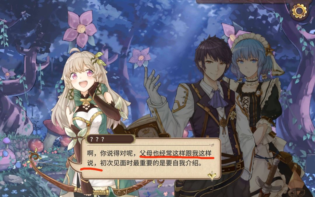 最后再来讲冲我玩游戏最看重的剧情,这款游戏剧情怎么说呢,嗯,食之无味,弃之可惜?就感觉有剧情没剧情都一样,角色的塑造也不够突出,性格一眼扫到头,让人根本不想去了解这些角色,再者我看评论的时候发现这款游戏原先好像是有外服的,这让我怀疑它是不是剧情都是机翻的,就根本不符合日常说话呀,具体看下图
