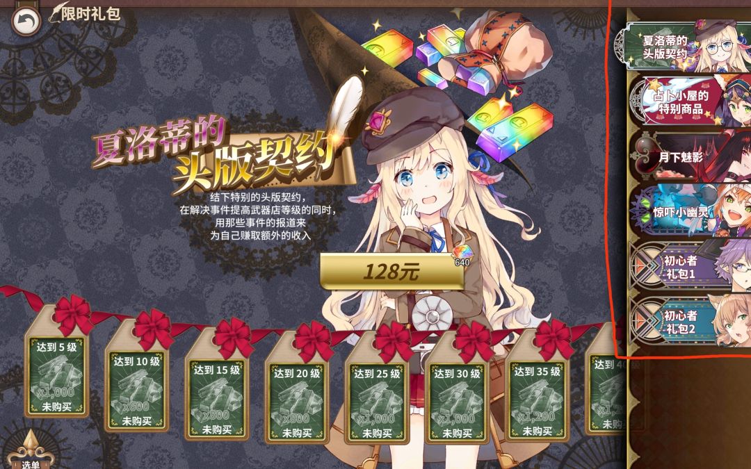 咳咳,跑题了跑题了,虽然说制作的不是很精良吧,但是可以看出官方还是很想好好“发展”游戏的,一进商城一大堆氪金礼包迎面冲来,差点让我感动到退坑😅下图中被框住的部分就是氪金部分,再说抽卡资源方面,刚开始的时候看了一眼活动,感觉官方诚意还是可以的,没想到仔细一看却是拼夕夕版的