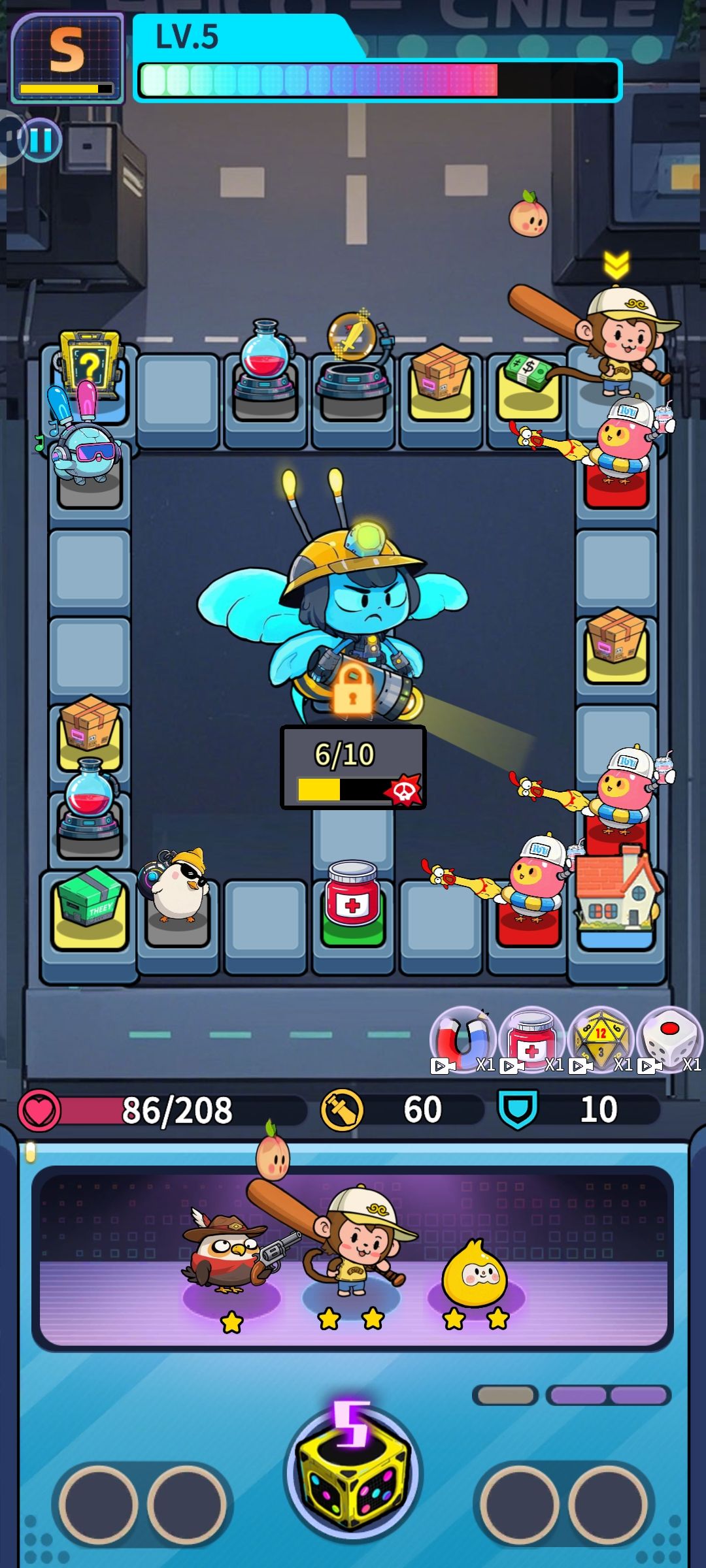轻度休闲肉鸽游戏,玩法很像达大富翁,通过摇骰子来行走,遇到怪触发战斗,支持多倍加速和跳过战斗,有些数值化。每次进入游戏都能比前一次多推进一些,以此来获得数值粘性。