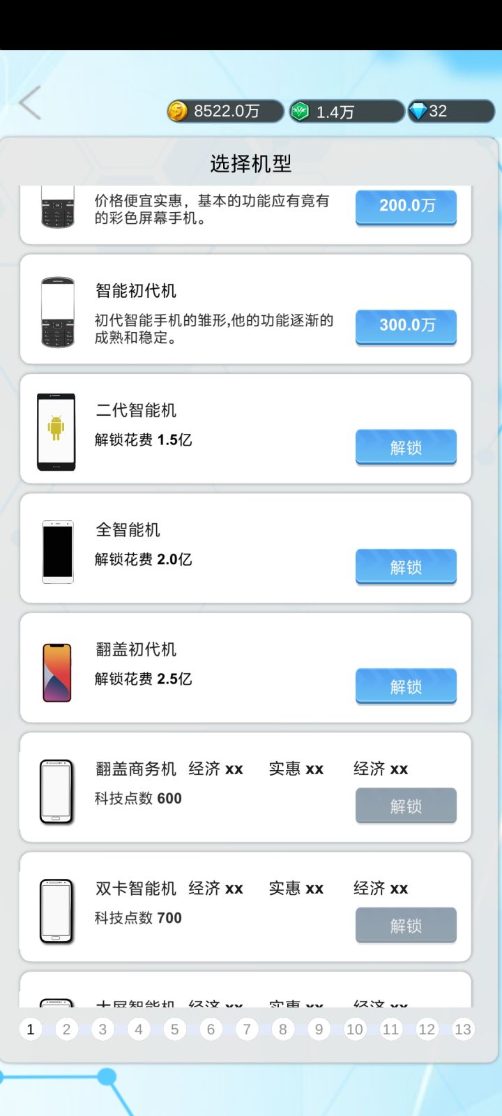 感觉这游戏跟造手机卖手机没什么关系了,内容完全脱离实际,1990年最低级的小手机店都需要5000w的开店费用,能用各家大厂新款硬件靠的不是直接花钱买而是自己叠科技点解锁购买使用权。老人机能塞苹果A15和32g运存,游戏内1990年我做出了各种款式的彩屏智能机却卖不出去,想去参考一下市场上的其他热销手机,发现销售榜上其他厂家的机型都不显示具体型号,硬件配置和价格,完全没用一张废纸。