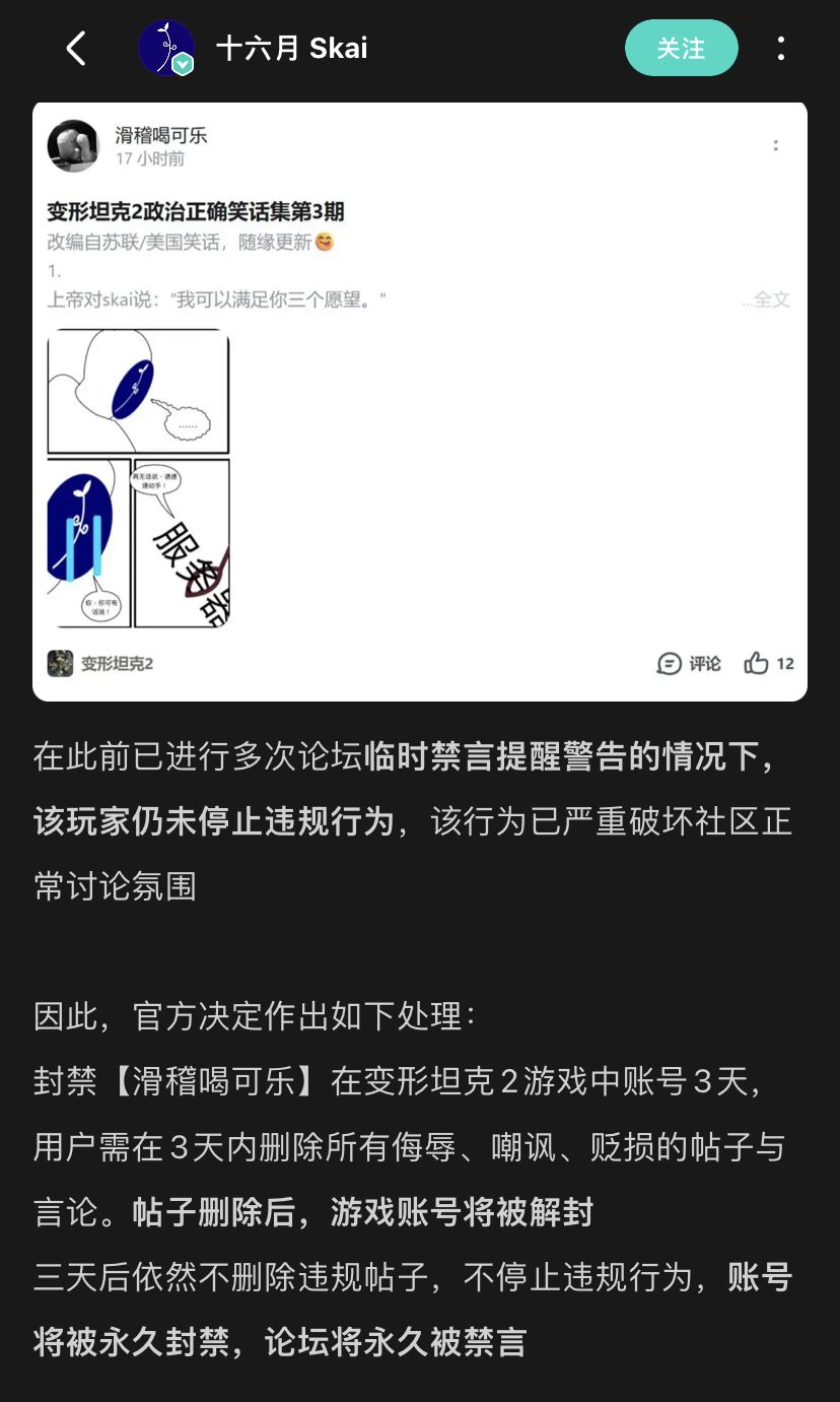 目前为止,这已经是一个可以对你的虚拟财产进行“合法销毁”的游戏了,开发者掌握着对你账号、充值、游戏数据的绝对生杀大权,且无需引用任何明确的条款,全凭其个人当下的情绪和判断,任何公开的质疑、批评,甚至只是复述其过往的承诺,都可能被定义为“违规”或“攻击”,并招致账号被永久封禁、所有投入化为乌有的惩罚。