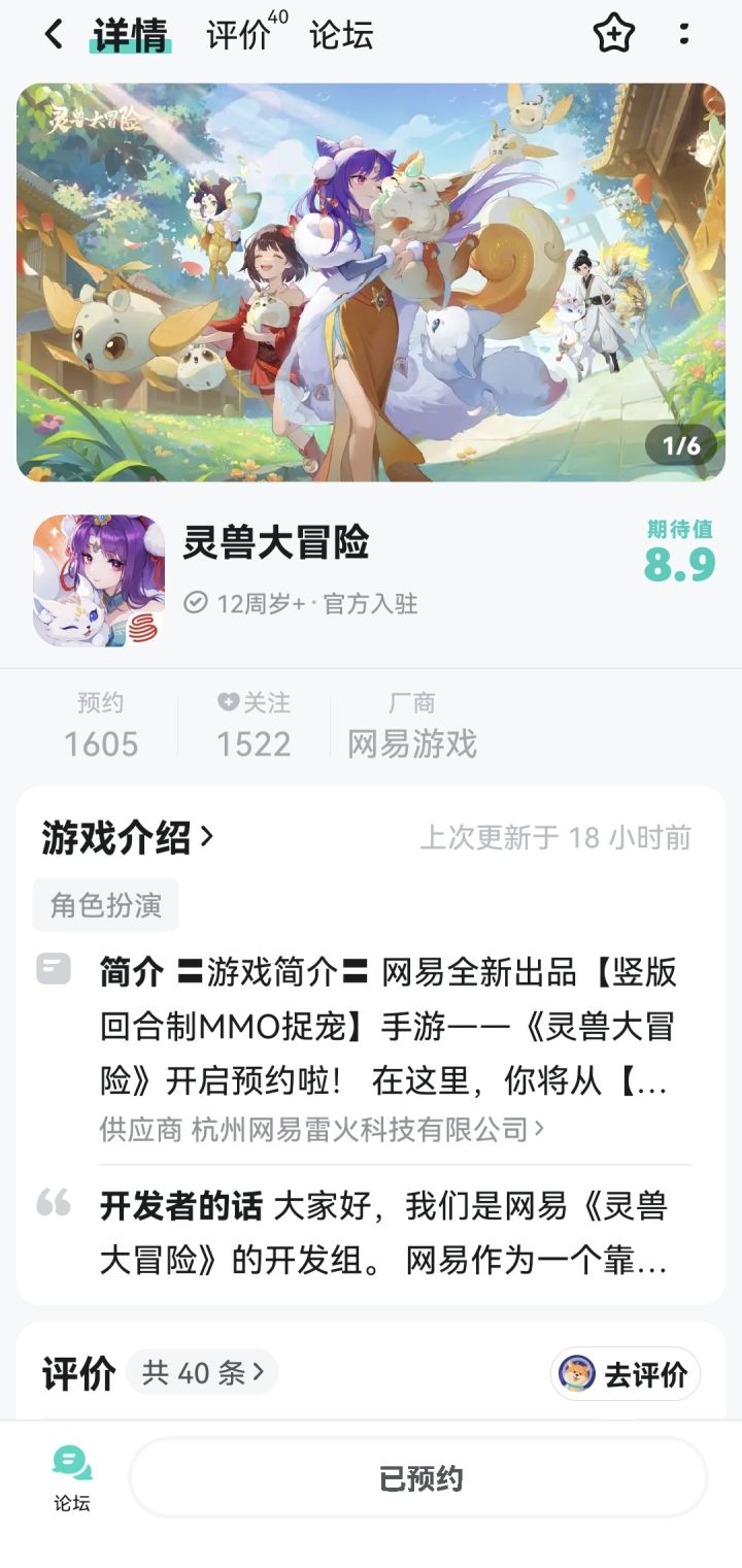 网易终于出手了,类似宝可梦go的捉灵兽游戏,卡通的风格,超期待,预约按钮已戳烂,求官方快开服,等不及要玩了,我要抓神兽😄😄