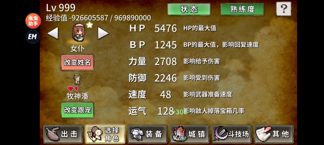 不开修改肝装备确实太麻烦了(开了确实舒服一个下午就通关了),就算幸运拉满的情况下9图的boss红装也可能10多吧才出一个,而且体力不改根本不够大多久,我改到99999刷的游戏都打了1w多,石头倒是没啥除了双倍角色熟练度其他装备都用不到,游戏满级999级,经验超过2的31次方-1就会变成负数,所以改经验简单点就一次改21y升级,满级后经验超过也不会升级了