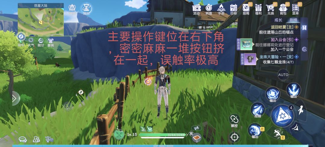 技能、普攻,包括采集、冲刺、跳跃,这些操作的按键全部挤在右下角,日常使用起来误触率极高。