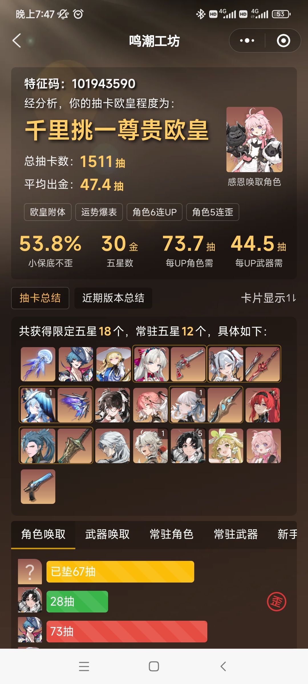 本来在没看前瞻前,我是对这次周年庆挺有期待的,毕竟从刚开服就开始玩的鸣潮,那时候手机优化很差还有大大小小的节奏满天飞,那段时间真是很多次都想退坑了,为了抽今夕就一直玩到了1.1,就是乘霄山的版本让我留下来一直玩到了现在,到了2.2版本后剧情和地图真的带给我很惊艳的感觉,所以对后边2.3就抱有很大的期待。然后前瞻直播就……玩抽象玩尬的,还吊我胃口,最后一总结,好像啥内容都没看到,福利也没多少。