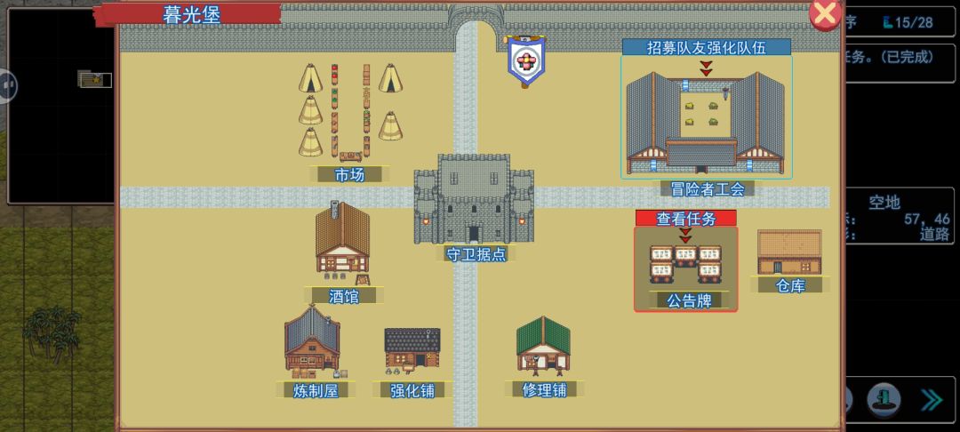 2D像素风,看着有几分像用RM做的。界面布局很紧凑,UI偏小,很像PC端移植,未对手机做适配,文本也非常小。角色资源看起来像商店通用货,有些似曾相识,像素小人很少差异化不明显。