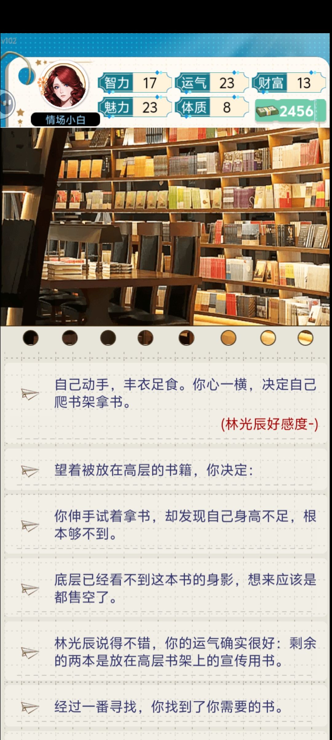 大半夜玩这个游戏被男角色恶心得半死,自己拿书书店老板扣好感就算了,等到医生角色约人放鸽子打电话给他他还在这边叽叽歪歪训诫别人真是恶心得半死,后面有人催他回去做手术我安慰他也扣好感真的忍不了了,什么神经物种啊,能不能增个玩法体质大于一定程度可以把对方把暴打一顿
