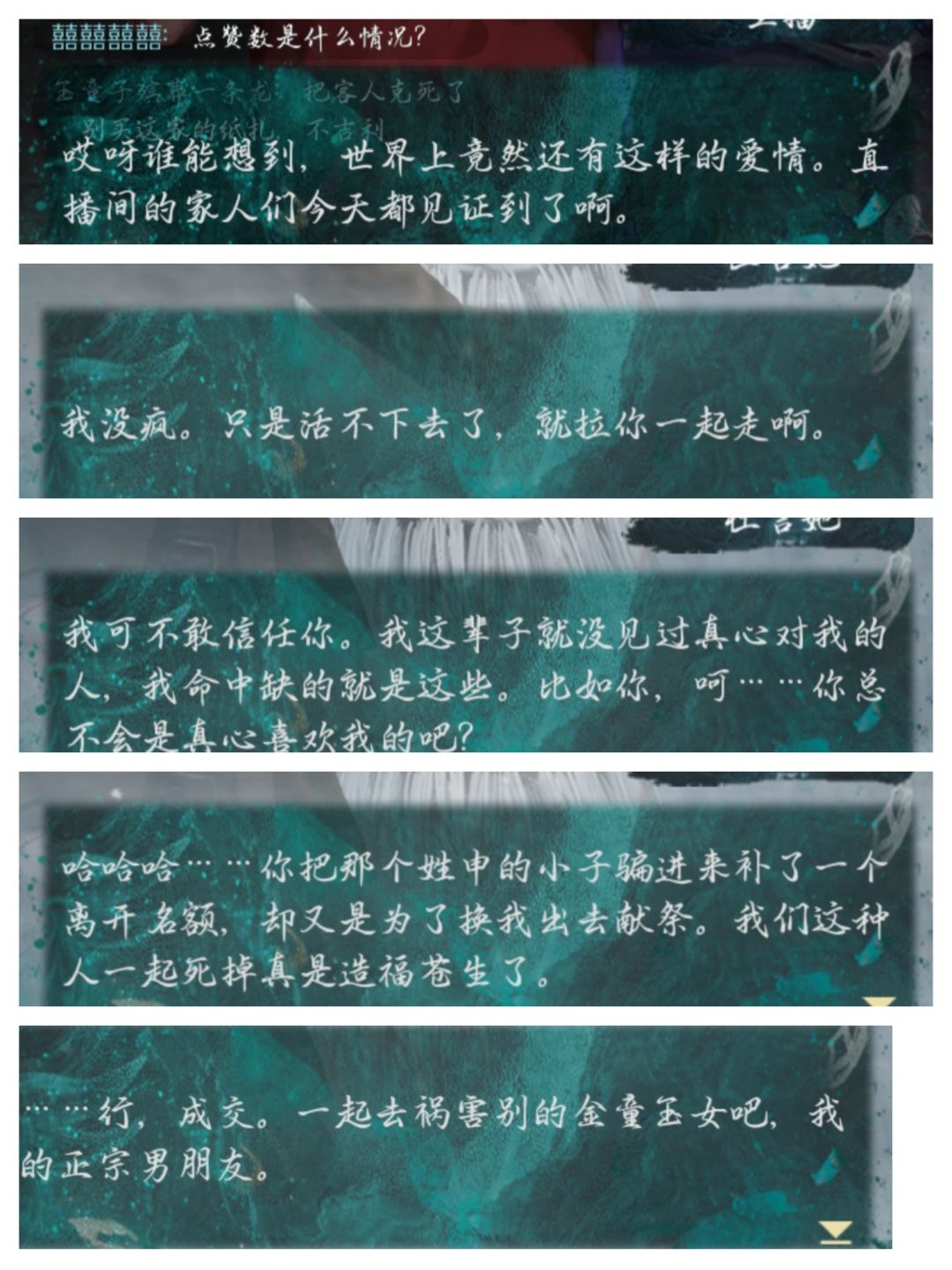 感觉这次这对“金童玉女”和这次的名字也好配——这哪是小情侣?分明是小恨侣。游戏名叫“卿不负”,但游戏全程都在欺骗AHHHHH😂😂😂