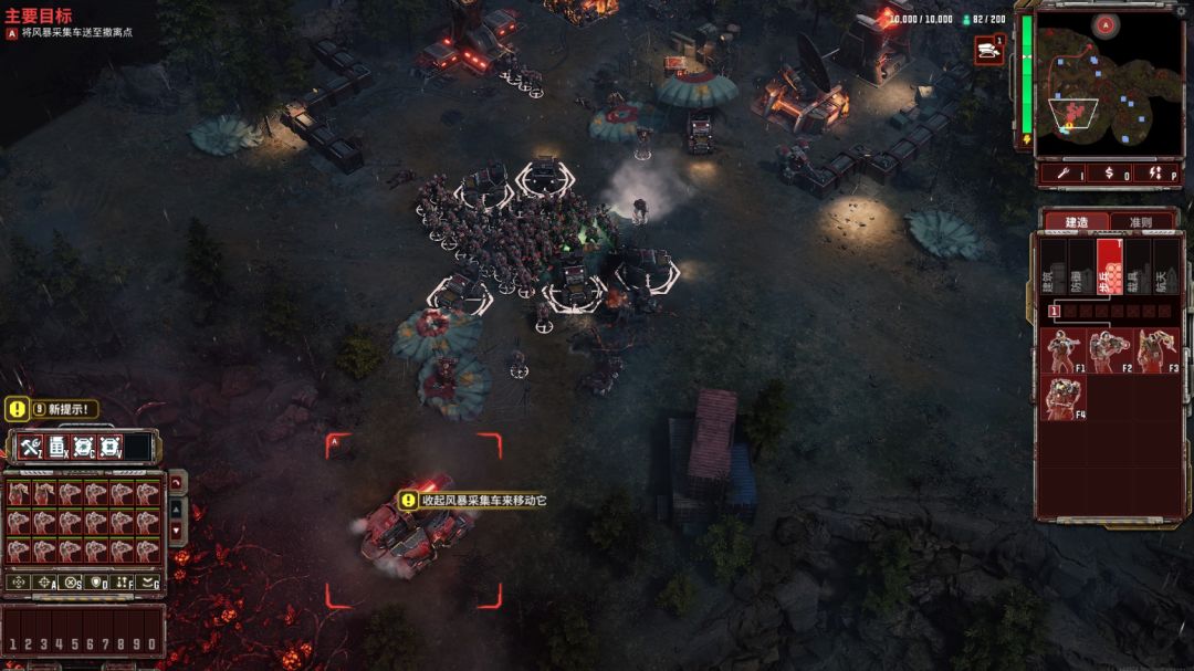 需要了解的一个设定是:由于双方都在争夺名为“风暴”的末世资源,因此双方阵营的矿场各具特色。例如,GDF使用的是标准的采矿车,它只会自动识别附近的矿点进行采集,然后再自动返回到精炼厂。