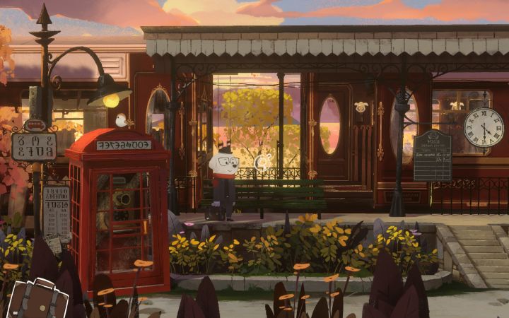 进入游戏,第一注意到的就是整体画风的可爱,不管是以行进火车上的桌子,茶水和笔记本组成的开始界面,还是进入游戏后的场景,每一个人物与细节,他们的画风都是那么的可爱,简直像从童话世界里走出来的一个游戏,刚下车在长椅闲坐,空无一人的列车站,墙上的时钟滴答作响,金黄的枫叶随风飘扬。水果摊老板的店上,麻雀三五成群,叽叽喳喳的叫唤,初入小镇此起彼伏的房屋,湖边波光粼粼的水面,看到这样一片宁静而祥和的场景,整个人在游戏过程中也变得慢了下来,享受这难得的平和时光。