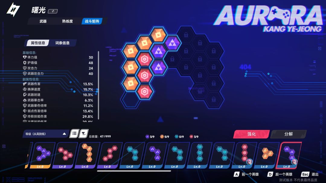 模组则相当于局外成长内容,其会从各类属性提升角色,玩法呢比较有意思,不同的模组形状也不同,需要玩家用旋转、拼接的方式将其放入矩阵,形式上类似于消除小游戏,也很考验玩家的规划管理能力。