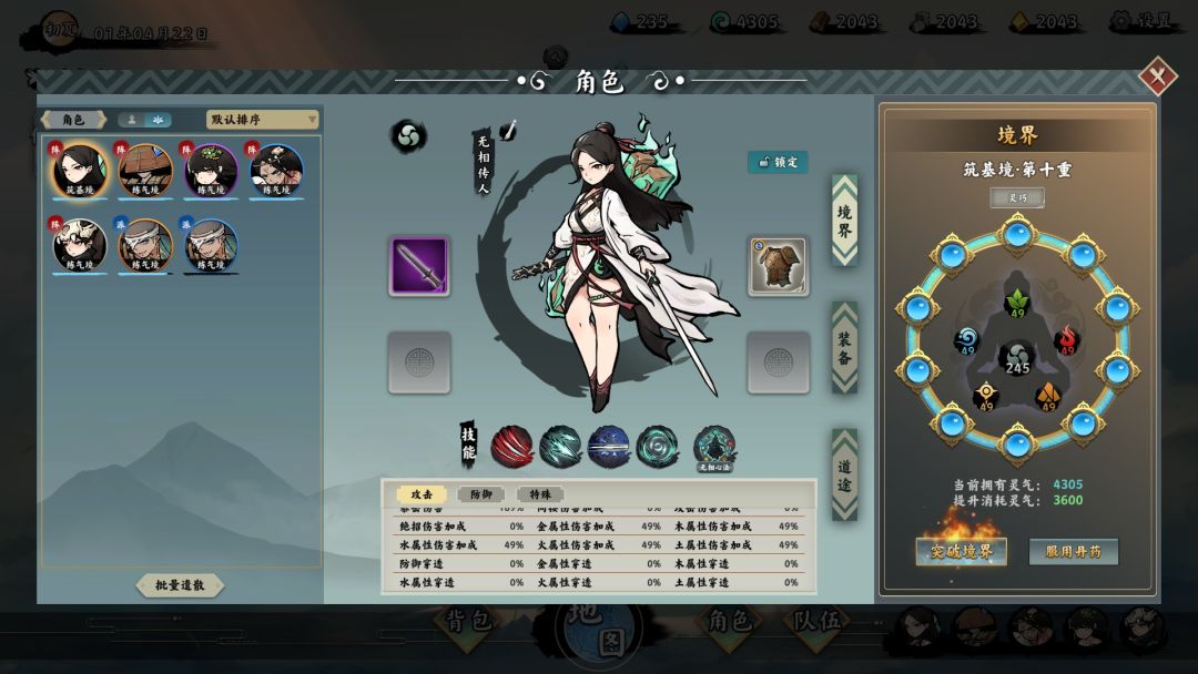 点击角色图标便可以进入管理界面进行各项操作了,其中境界、装备、道途都比较简单,这里着重介绍一下无相心法系统。