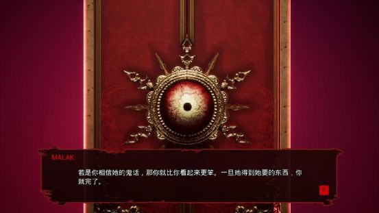 当玩家通关了第一章的内容后,我们的敌人马拉克就会出现。他利用门上的眼睛窥视着大厅里的主角。