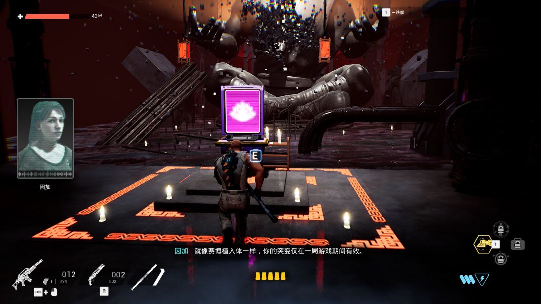 游戏里有些房间击败敌人后可以获得赛博义体,分为头、躯干、脊椎、双手、腿部几大部位,这些部位的能力提升是核心内容。近战的话比如模糊左臂,打完一套平A会产生个虚影继续攻击;守护者右臂,打完一套会产生个爆炸,前期伤害非常足。而远程的枪手套装伤害就更足了,虽然少了拳拳到肉的快感,但是伤害变得更爆炸了,打BOSS直接碾压。